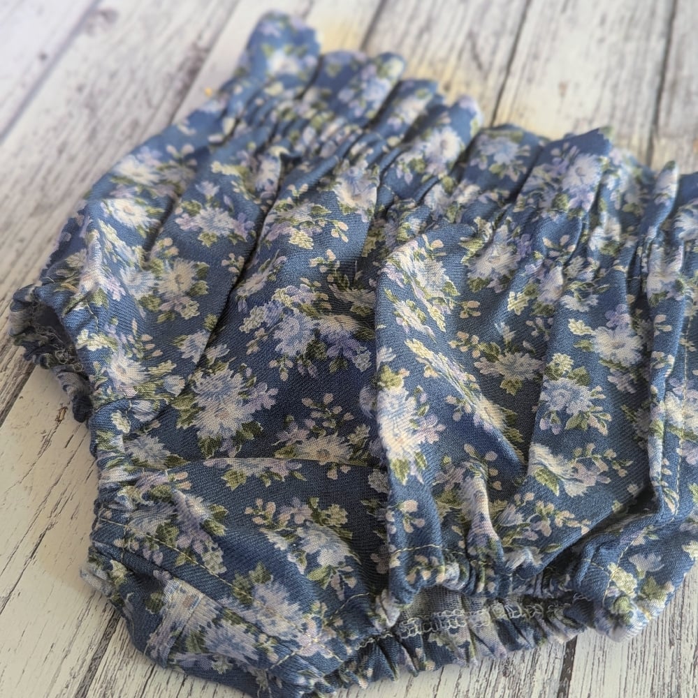Bloomin' Bloomers in a gorgeous blue floral print, handmade by myself with elasticated "paper bag" waist and elasticated leg holes.